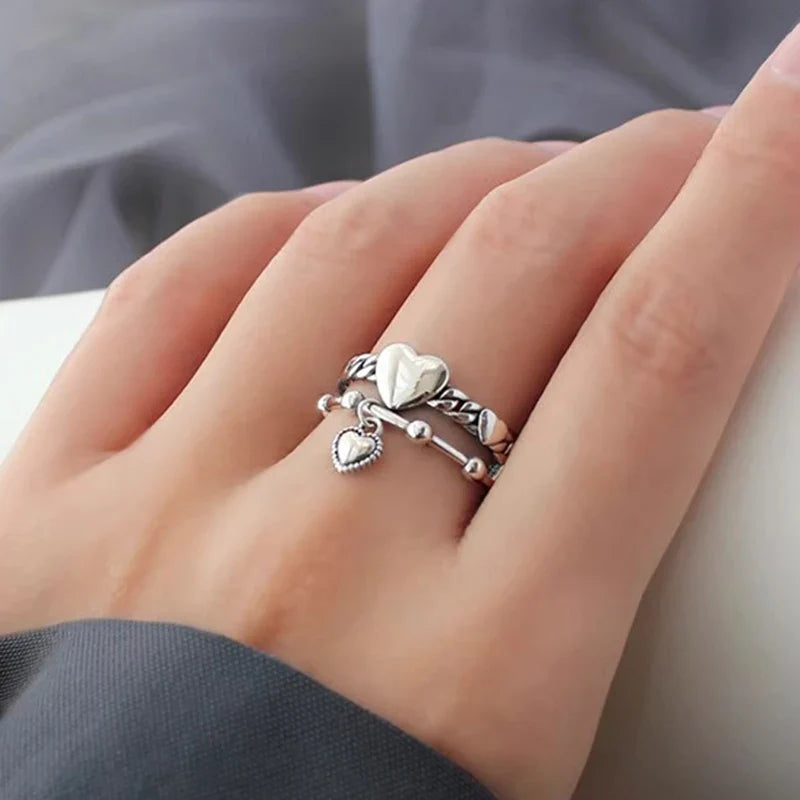 Cast in silver with engraved bandwork and twin hearts, this piece blends weight, texture, and motion in a form that feels heirloom-bound, like a relic from a bloodline built to reign.