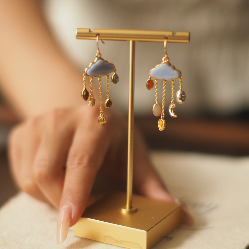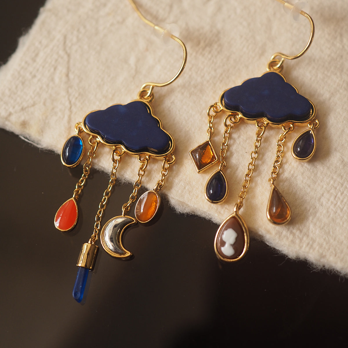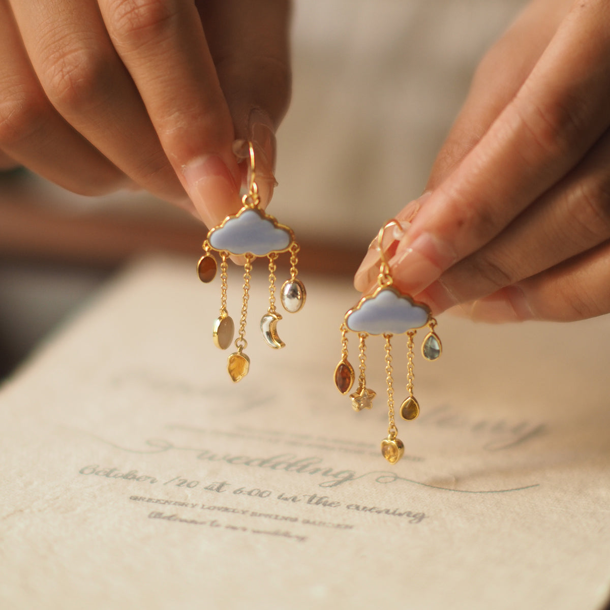 A best-seller for a reason, this pair is all about contrast, movement, and meaning. At the top, a navy enamel cloud anchors the piece with depth and calm — a rich, moody tone set in 18k gold-plated sterling silver.