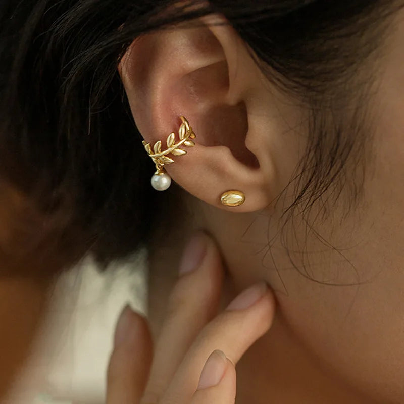 Gracefully designed leaves trace the curve of the ear like a laurel crown caught mid-bloom or a whisper mid-air.